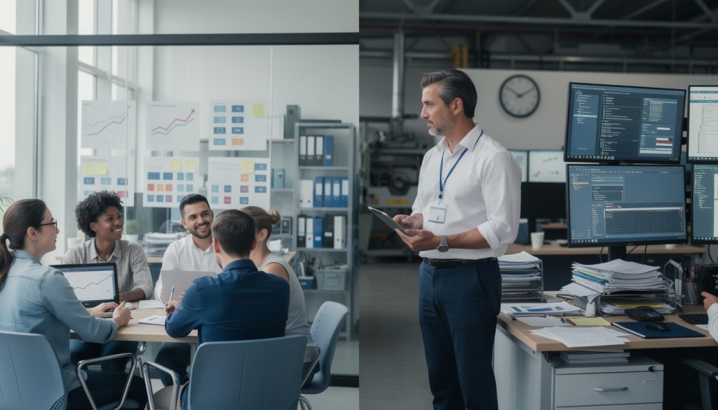 Abordons maintenant les zones d’ombre. Le principal inconvénient est l’ambiguïté hiérarchique. Placé entre deux niveaux, l’agent de maîtrise peut subir des tensions : la direction exige la performance tandis que les équipes attendent écoute et protection. Cette position d’interface génère des attentes contradictoires et met à l’épreuve les compétences en communication.